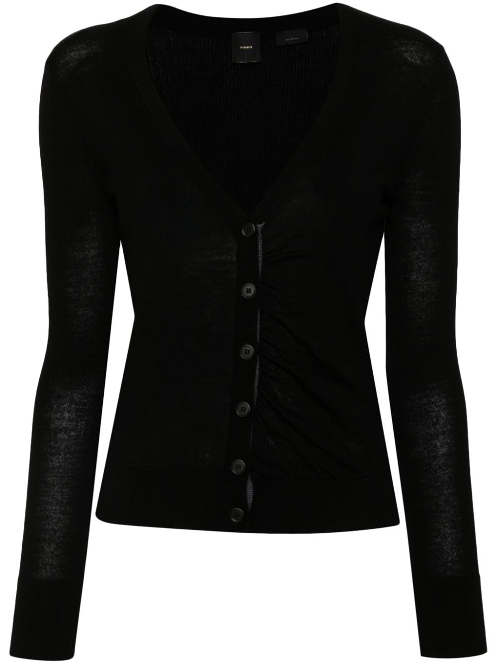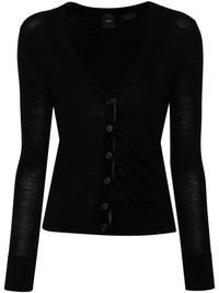 Boise cardigan Highlights - Black - Wool - Fine knit - Ribbed v-neck - Front button fastening - Ruched detailing - Long sleeves - Ribbed cuffs and hem Imported Composition Wool 100% SIZE & FIT Model measurements Height 5 ft 10 in(1.77 m) Bust/Chest 34.64 in(88 cm) Hips 35.43 in(90 cm) Waist 24.8 in(63 cm) FittingInformation Designed for a slim fit that sits just away from the body offering a close yet comfortable fit The ribbed hem offers a close, comfortable fit Made with a midweight knit, this piece offers some stretch This piece fits true to size – take your usual size Washing instructions Hand Wash