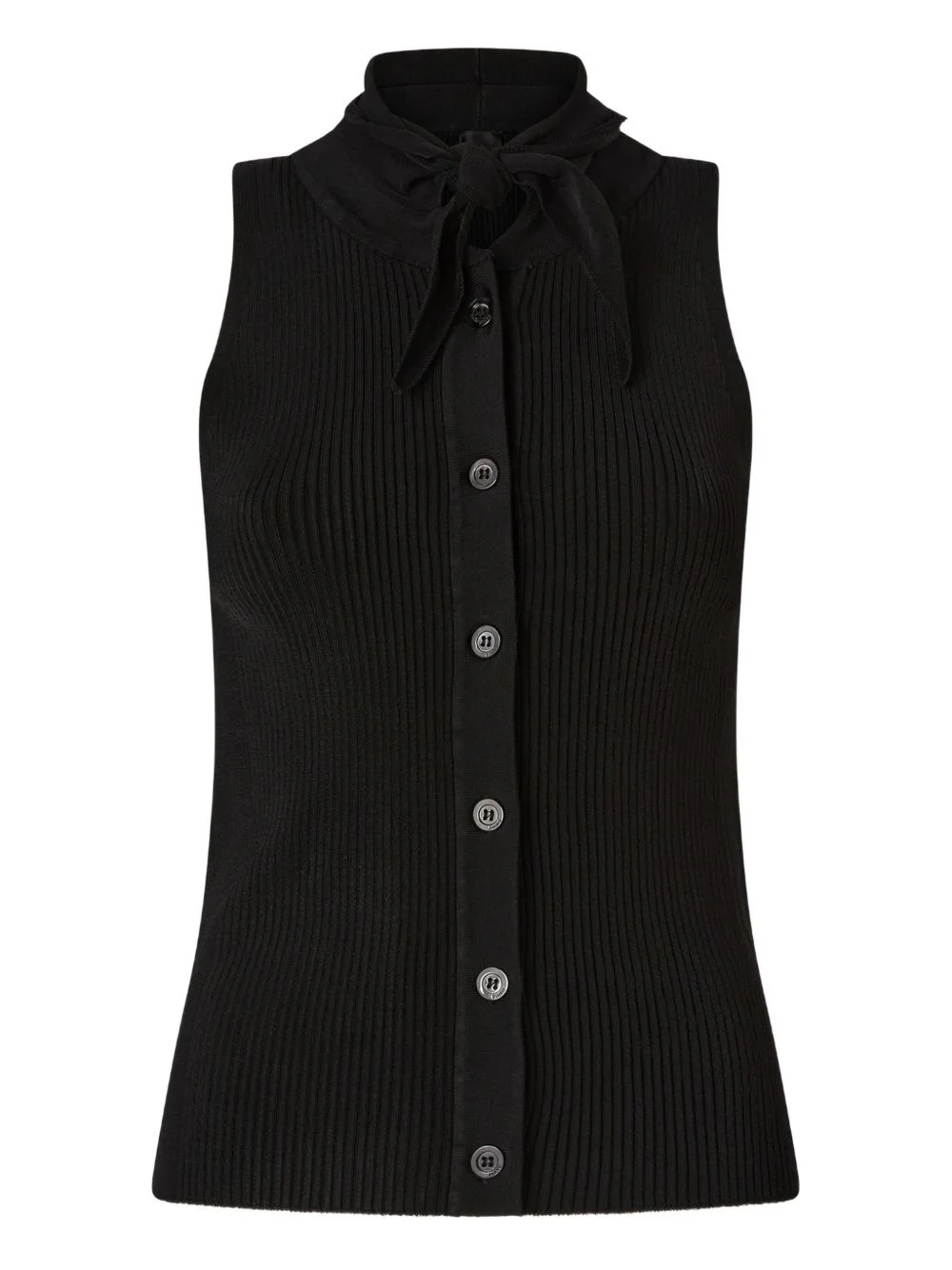 bow-tie button-down knitted blouse Highlights - Black - Ribbed knit - Front button fastening - Bow detail - Sleeveless Imported Composition Viscose 80%, Nylon 20% Washing instructions Hand Wash