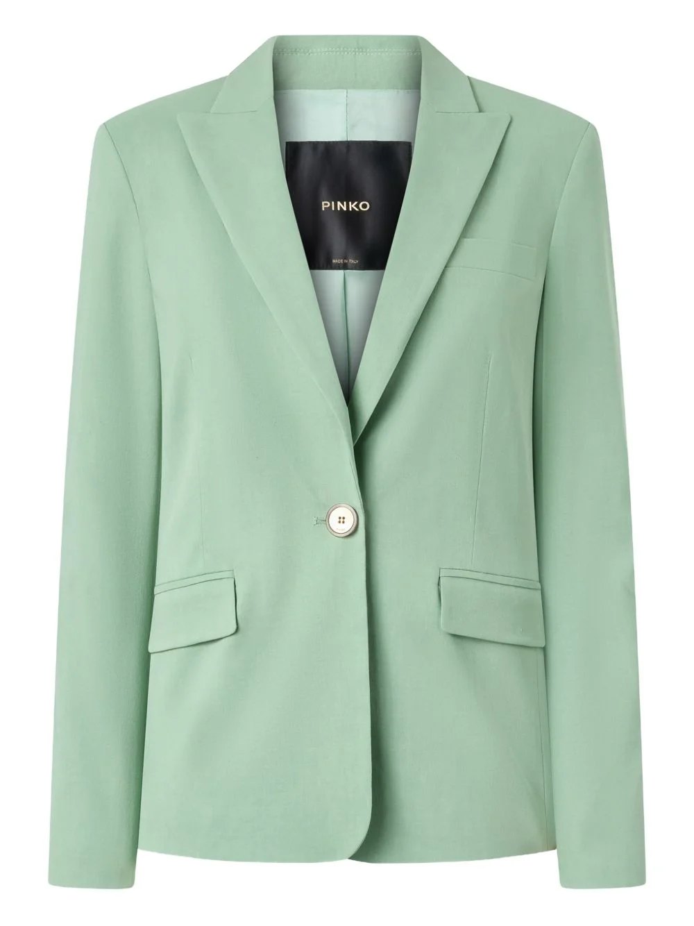 button blazer Highlights - Green - Single-breasted - Peaked lapels - Button fastening - Flap pockets - Buttoned cuffs Imported Composition Organic Linen 60%, Viscose 35%, Elastane 5% Washing instructions Do Not Wash/Do Not Dry Clean