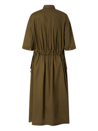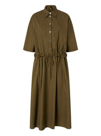 button-up belted midi dress Highlights - Olive green - Short sleeves - Adjustable drawstring waist - Front button fastening - Side inset pockets Imported Composition Cotton 100% SIZE & FIT FittingInformation Designed for a relaxed fit, this piece allows for comfort and movement when worn The elasticated waist allows for a comfortable fit Made from a midweight non-stretch fabric Washing instructions Read Manufacturer Guidelines