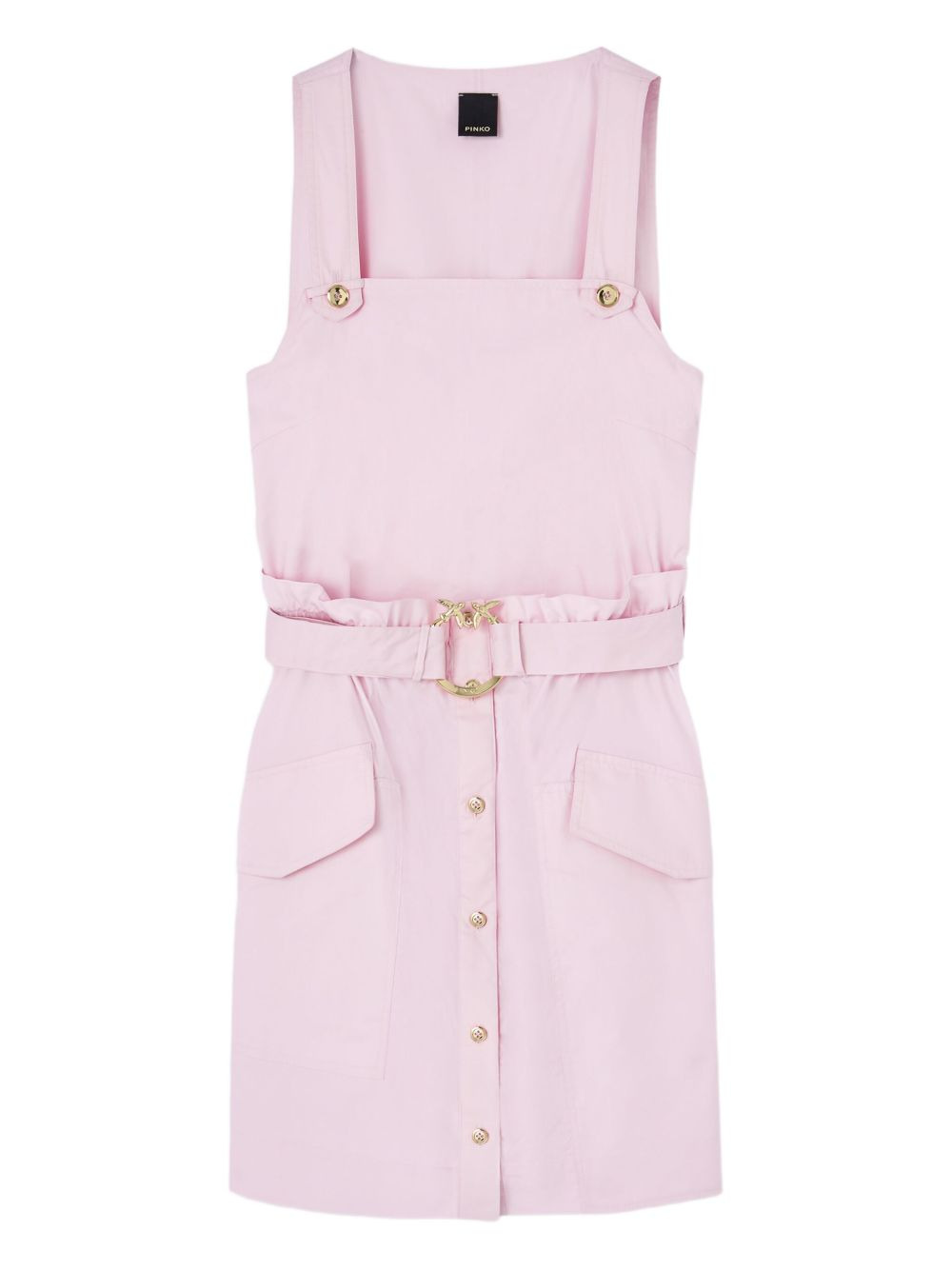 buttoned-up belted dress Highlights - Light pink - Sleeveless design - Belted waist - Gold-tone love birds buckle - Button front - Flap pockets Imported Composition Cotton 100% Washing instructions Read Manufacturer Guidelines