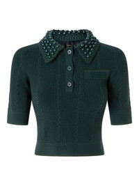 cable-knit beaded-collar polo top Highlights - Dark green - Cable knit - Short sleeves - Polo collar - Beaded embellishment - Button placket Imported Composition Acrylic 62%, Polyester 28%, Wool 10% Washing instructions Hand Wash