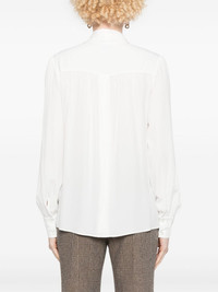 Cassaforte shirt Highlights - White - Chiffon crepe - Pussy-bow collar - Long sleeves - Buttoned cuffs - Curved hem - Front button placket Imported Composition Acetate 69%, Silk 31% SIZE & FIT Model measurements Height 5 ft 9 in(1.74 m) Bust/Chest 34.64 in(88 cm) Hips 36.61 in(93 cm) Waist 26.37 in(67 cm) FittingInformation Designed to be unstructured, offering a loose fit throughout Made from a lightweight non-stretch fabric This piece fits true to size – take your usual size Washing instructions Dry Clean Only