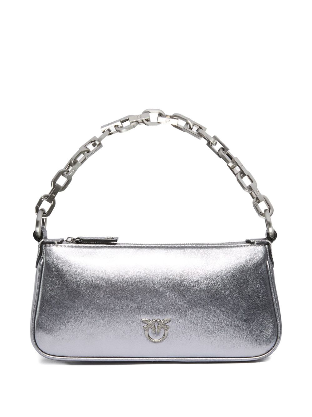 chain-link metallic leather shoulder bag Highlights - Gunmetal silver - Calfskin leather - Chain-link top handle - Zip fastening - Logo emblem Imported Composition Outer: Metallic Leather 100%