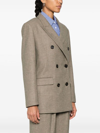 check-pattern blazer Highlights - Beige/multicolour - Check pattern - Peak lapels - Shoulder pads - Long sleeves - Chest welt pocket - Two side flap pockets - Logo-jacquard lining - Straight hem - Double-breasted button fastening Made in Italy Composition Outer: Wool 40%, Viscose 30%, Polyester 29%, Elastane 1% Lining: Polyester 100%, Acetate 53%, Viscose 47% SIZE & FIT Model measurements Height 5 ft 10 in(1.78 m) Bust/Chest 33.07 in(84 cm) Hips 36.61 in(93 cm) Waist 24.8 in(63 cm) FittingInformation Designed for a boxy fit, intended for a loose fit throughout The internal shoulder pads offer a structured shape Made from a midweight fabric This piece fits true to size – take your usual size