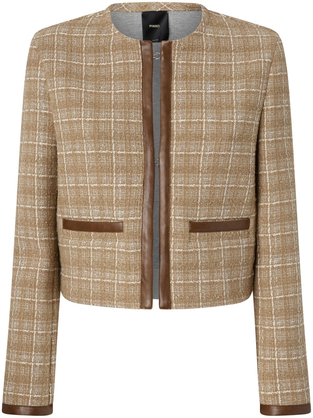 checked jacket Highlights - Beige - Front hook and eye fastening - Two front welt pockets - Round neck - Long sleeves Made in Italy Composition Cotton 70%, Polyester 30%