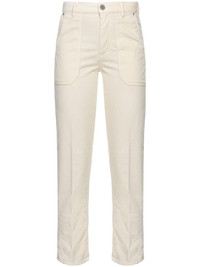 Cloe corduroy trousers Highlights - Ivory white - Cotton blend - Corduroy - Logo patch to the rear - Pressed crease - Belt loops - Concealed fly and button fastening - Straight leg - Two front patch pockets - Two rear patch pockets Imported Composition Cotton 78%, Modal 20%, Elastane 2% SIZE & FIT FittingInformation Designed for a tapered fit, these trousers allow for a close fit at the waist and a loose unrestricted fit over the leg with a closer fit towards the ankle Made from a midweight stretch fabric, this piece offers elasticity and flexibility when worn