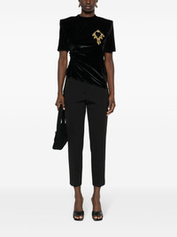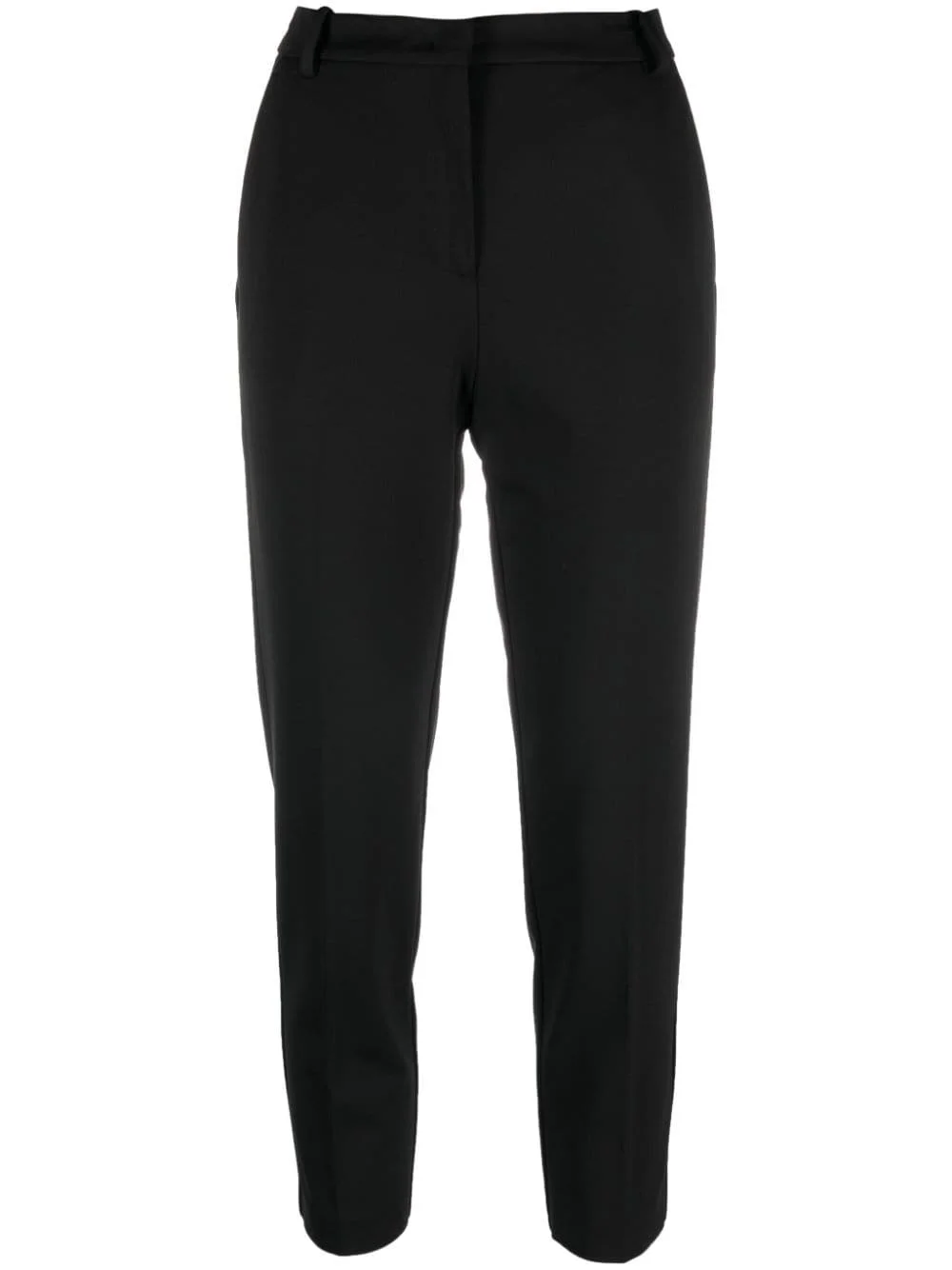 concealed-fastening tapered trousers Highlights - Black - Stretch-design - Belt loops - Concealed front fastening - Two side slit pockets - Two rear jetted pockets - Tapered leg - Cropped leg Made in Italy Composition Outer: Viscose 65%, Polyamide 30%, Elastane 5% Lining: Acetate 65%, Polyester 35% SIZE & FIT Model measurements Height 5 ft 10 in(1.77 m) Bust/Chest 32.28 in(82 cm) Hips 35.03 in(89 cm) Waist 25.19 in(64 cm) FittingInformation Designed with a cigarette cut, these trousers allow for a close fit at the waist and offer an unrestricted fit through to the ankle Made from a midweight stretch fabric, this piece offers elasticity and flexibility when worn This piece fits true to size – take your usual size Washing instructions Dry Clean Only