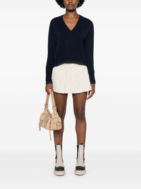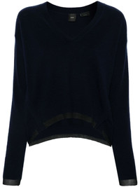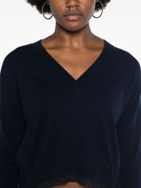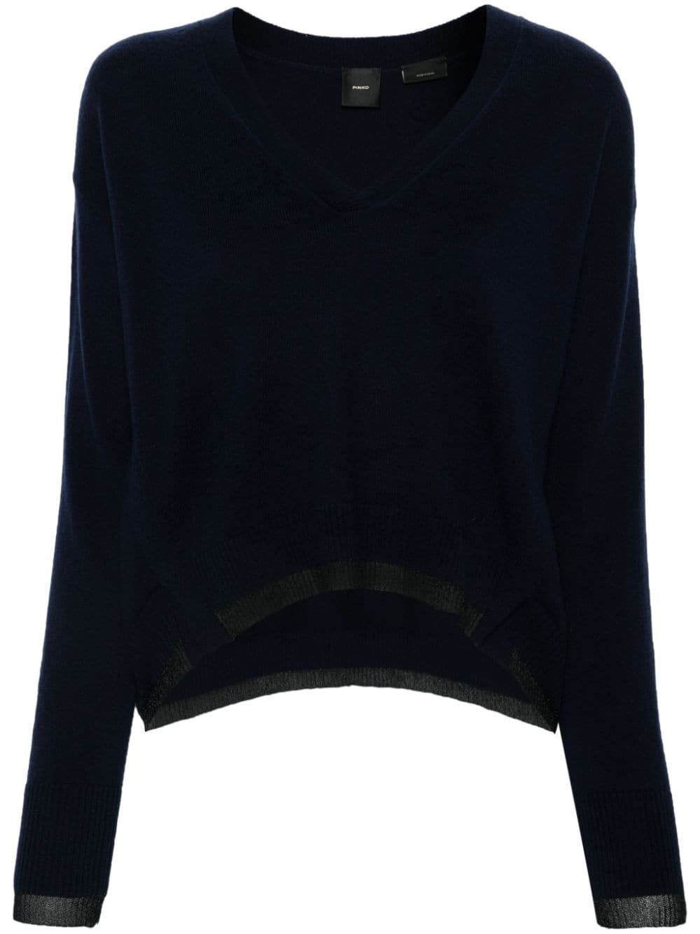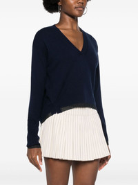 contrasting border sweater Highlights - Navy blue - Wool-cashmere blend - Metallic threading - Knitted construction - Ribbed v-neck - Long sleeves - Ribbed cuffs and hem - Contrasting border Imported Composition Wool 90%, Polyester 65%, Metallic Fibre 35%, Cashmere 10% SIZE & FIT Model measurements Height 5 ft 10 in(1.77 m) Bust/Chest 34.64 in(88 cm) Hips 35.43 in(90 cm) Waist 24.8 in(63 cm) FittingInformation Designed for a relaxed fit, this piece allows for comfort and movement when worn Made with a midweight knit, this piece offers some stretch This piece fits true to size – take your usual size