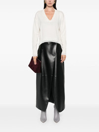 contrasting-trim sweater Highlights - White - Wool-cashmere blend - Fine knit - Contrasting ribbed trim - Lurex detailing - V-neck - Long sleeves - Short side slits - High-low hem Imported Composition Polyester 100%, Wool 90%, Cashmere 10% SIZE & FIT Model measurements Height 5 ft 10 in(1.78 m) Bust/Chest 33.46 in(85 cm) Hips 36.22 in(92 cm) Waist 23.22 in(59 cm) FittingInformation Designed to be unstructured, offering a loose fit throughout Made with a midweight knit, this piece offers some stretch
