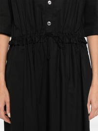 cotton midi dress Highlights - Black - Front button fastening - Elasticated drawstring waistband - Drop shoulder - Short sleeves Imported Composition Cotton 100% SIZE & FIT Model measurements Height 5 ft 10 in(1.79 m) Bust/Chest 33.07 in(84 cm) Hips 35.82 in(91 cm) Waist 24.01 in(61 cm) FittingInformation Designed for a relaxed fit, this piece allows for comfort and movement when worn The elasticated waist allows for a comfortable fit Made from a midweight non-stretch fabric Washing instructions Machine Wash
