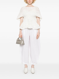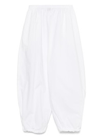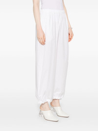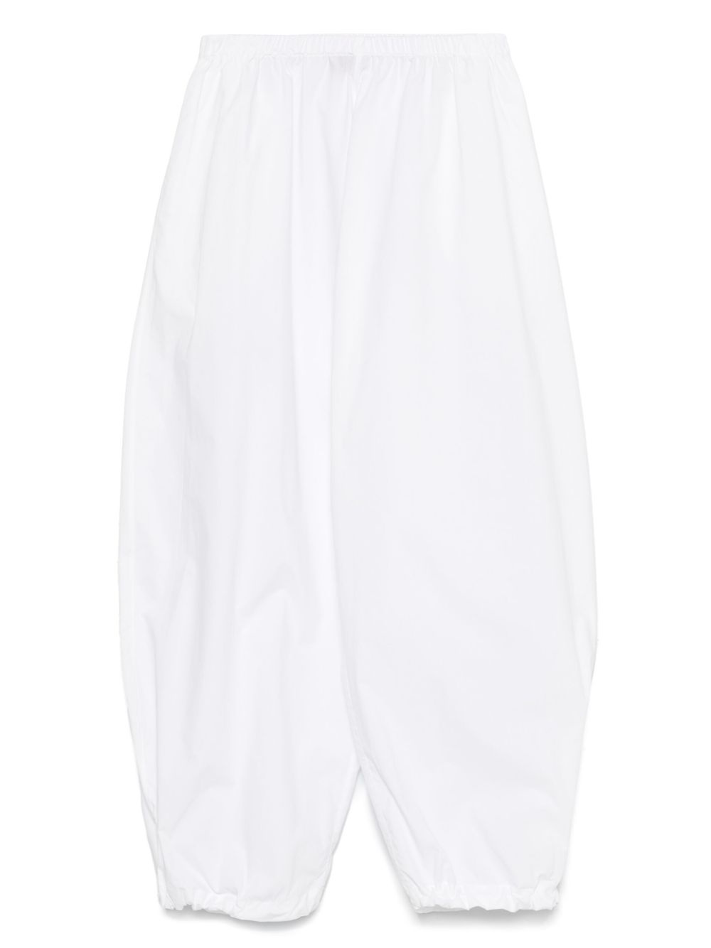 cotton tapered trousers Highlights - White - Elasticated waistband - Two side slit pockets - Drawstring hem Imported Composition Lining: Cotton 100% Outer: Cotton 100% SIZE & FIT Model measurements Height 5 ft 10 in(1.77 m) Bust/Chest 34.25 in(87 cm) Hips 37.4 in(95 cm) Waist 29.13 in(74 cm) FittingInformation Designed for a tapered fit, these trousers allow for a close fit at the waist and a loose unrestricted fit over the leg with a closer fit towards the ankle The elasticated waist allows for a comfortable fit Made from a lightweight non-stretch fabric Washing instructions Machine Wash