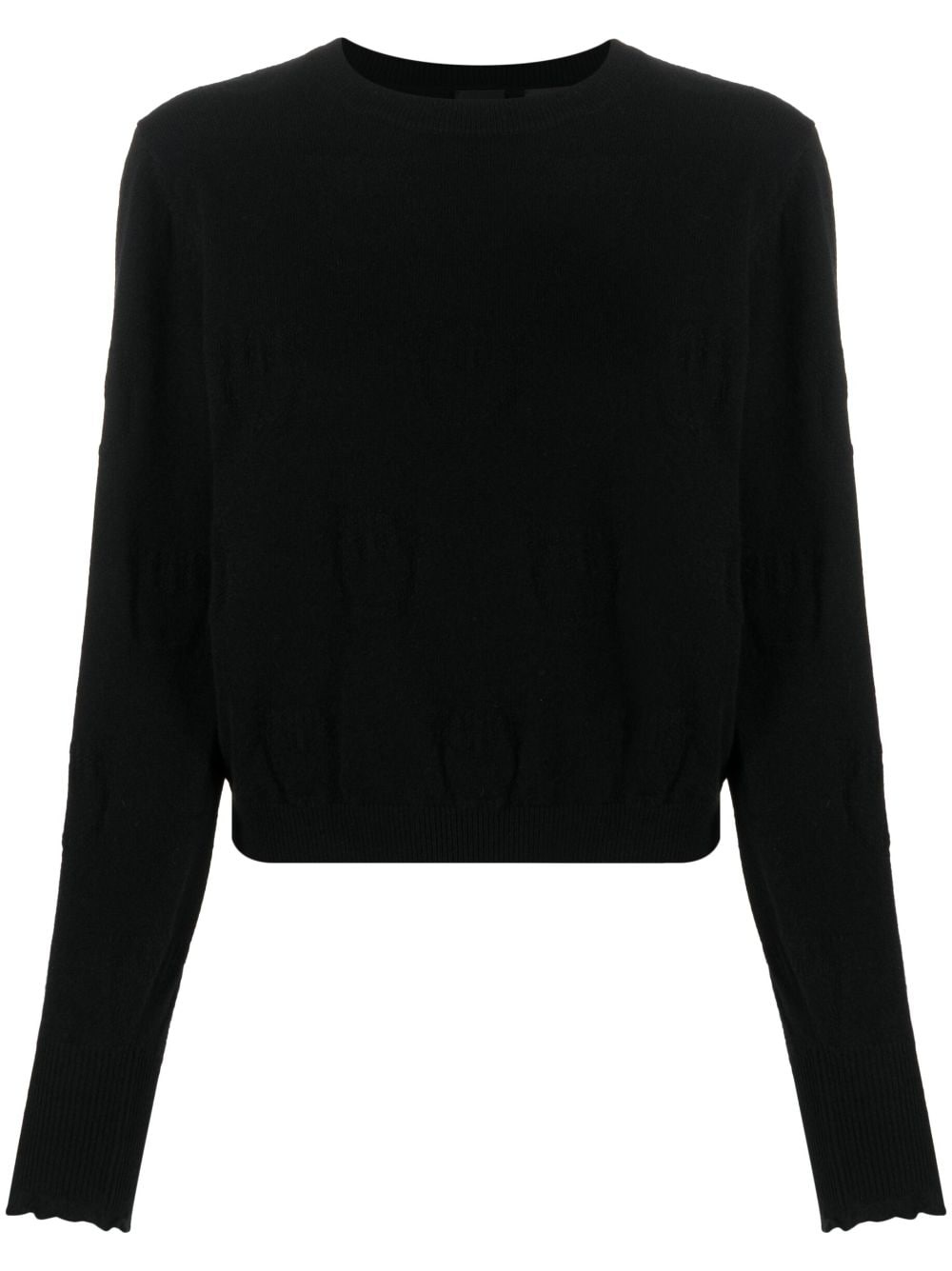 crew-neck cashmere jumper Highlights - Jet black - Cashmere - Scallop edge - Crew neck - Ribbed band collar - Drop shoulder - Long sleeves - Ribbed cuffs and hem Imported Composition Cashmere 100% SIZE & FIT Model measurements Height 5 ft 9 in(1.75 m) Bust/Chest 31.88 in(81 cm) Hips 33.85 in(86 cm) Waist 24.01 in(61 cm) FittingInformation Designed to be unstructured, offering a loose fit throughout Made with a lightweight knit, this piece offers some stretch This piece fits true to size – take your usual size