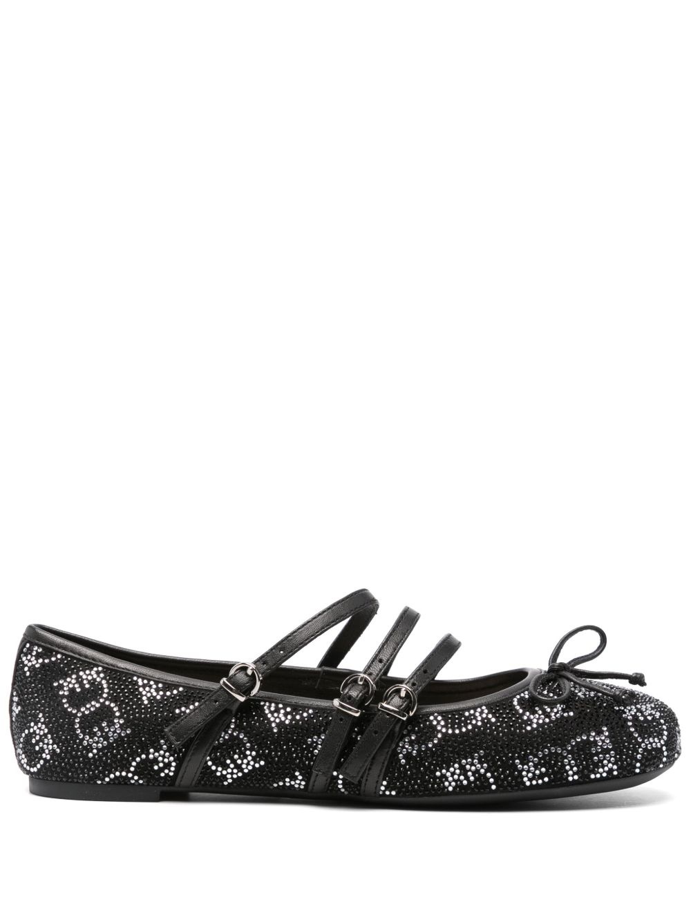 crystal-embellished ballet flats Highlights - Black - Buckle-strap fastening - Round toe - Bow detailing Imported Composition Rubber 100%