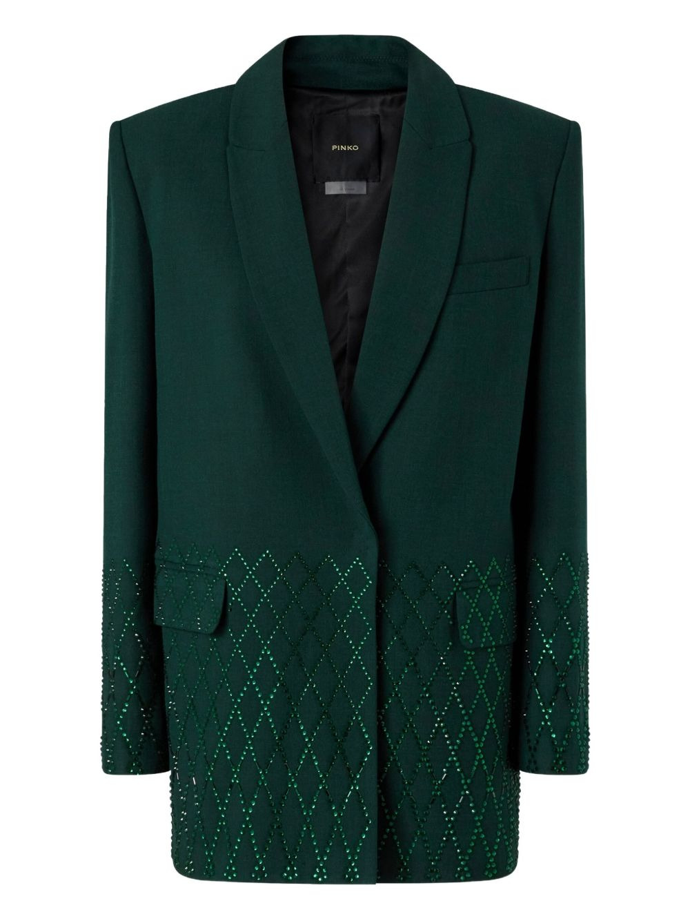 crystal-embellished blazer Highlights - Dark green - Crystal embellishment - Diamond pattern - Notched lapels Imported Composition Polyester 92%, Viscose 6%, Elastane 2% Washing instructions Do Not Wash/Do Not Dry Clean