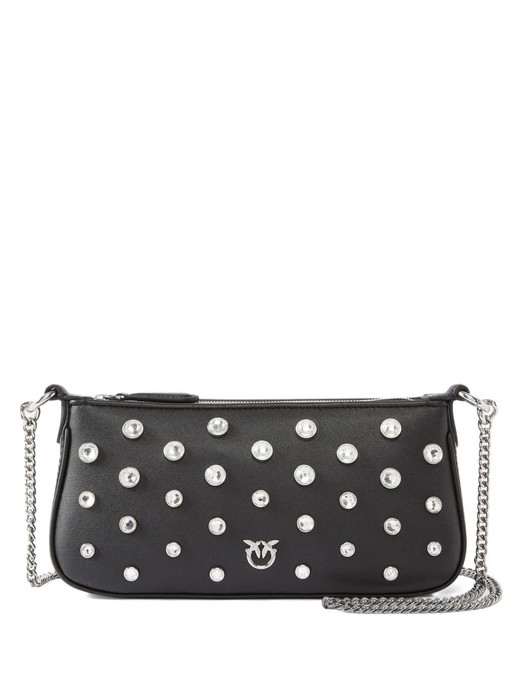 crystal-embellished chain cross body bag Highlights - Black - Crystal embellishments - Zip fastening - Chain strap - Logo detail Imported Composition Outer: Bovine Leather 100% Washing instructions Do Not Wash/Do Not Dry Clean