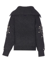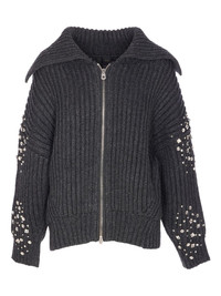 crystal-embellished ribbed cardigan Highlights - Grey - Ribbed knit - Front zip closure - Long sleeves - Crystal embellishment Imported Composition Wool 80%, Nylon 20% Washing instructions Read Manufacturer Guidelines