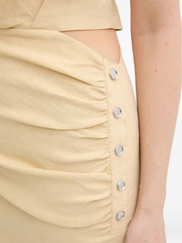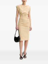 cut-out button-detail midi dress Highlights - Beige - Cut-out side - Gathered skirt - Sleeveless - Button embellishment Imported Composition Linen/Flax 55%, Viscose 42%, Elastane 3%