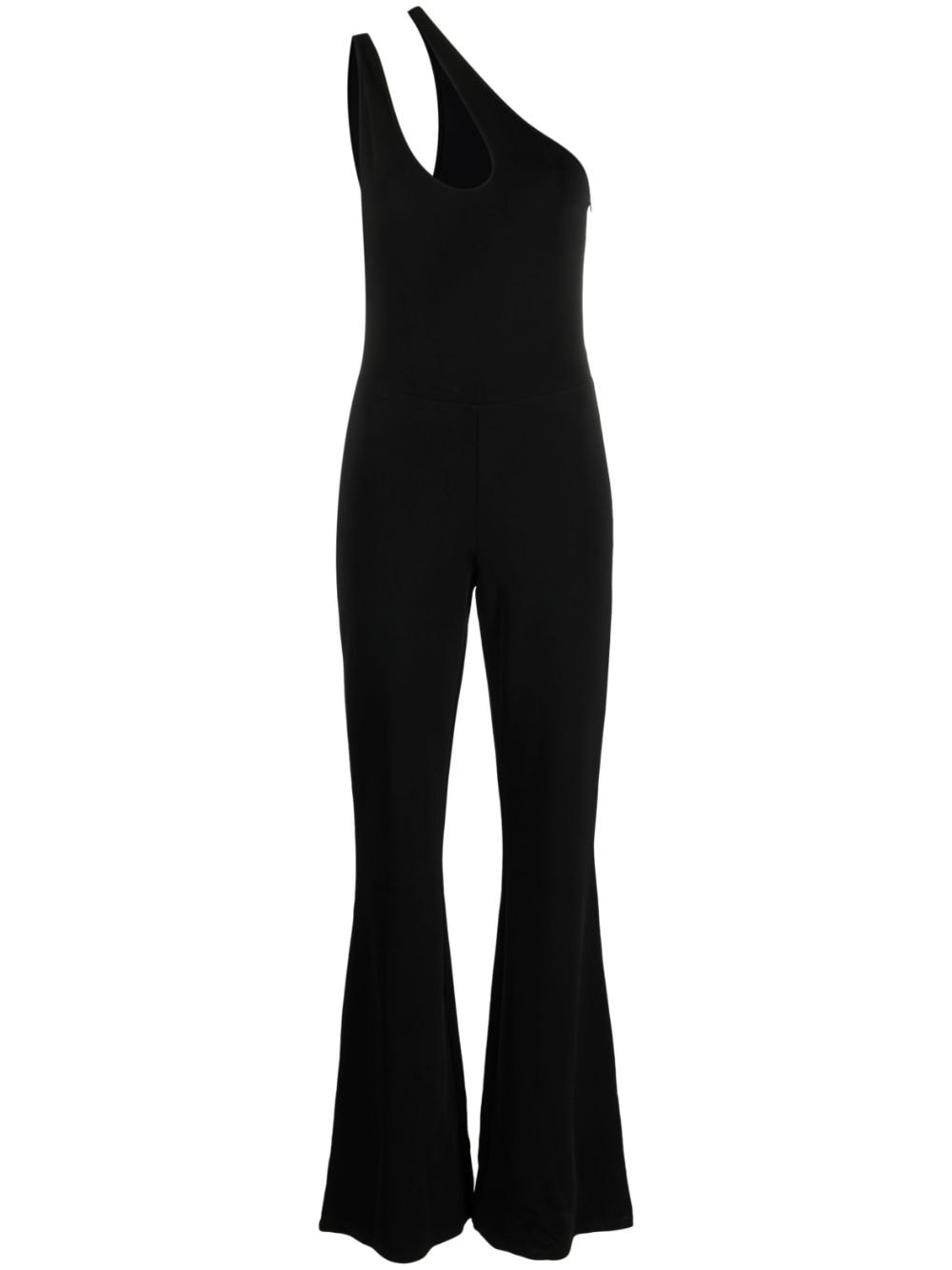 cut-out flared-leg jumpsuit Highlights - Black - Cut-out detailing - One-shoulder - Sleeveless - Flared Made in Italy Composition Polyamide 49%, Viscose 44%, Spandex/Elastane 7% SIZE & FIT Model measurements Height 5 ft 10 in(1.77 m) Bust/Chest 32.67 in(83 cm) Hips 35.43 in(90 cm) Waist 23.62 in(60 cm) FittingInformation Designed for a close fit throughout Made from a midweight stretch fabric, this piece offers elasticity and flexibility when worn This piece fits true to size – take your usual size Washing instructions Machine Wash