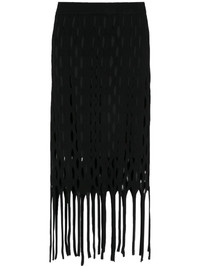 cut-out knitted skirt Highlights - Black - Stretch-design - Knitted construction - High-waisted - Ribbed waistband - Cut-out detailing - Internal slip skirt - Fringed edge Made in Italy Composition Outer: Viscose 80%, Polyamide 20% Lining: Polyamide 86%, Elastane 14%