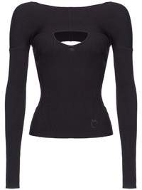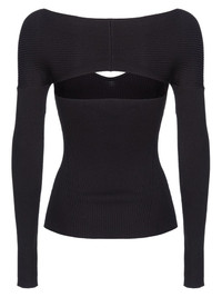 cut-out ribbed-knit jumper Highlights - Black - Ribbed knit - Panelled design - Embroidered love birds logo to the front - Boat neck - Long sleeves - Straight hem Imported Composition Viscose 66%, Polyamide 34% Washing instructions Hand Wash