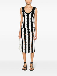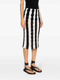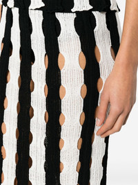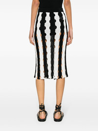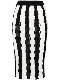 cut-out striped midi skirt Highlights - White/black - Ribbed knit - Cut-out detailing - Vertical stripe pattern - Elasticated waistband - Ruffle hem - Unlined - Mid-length Imported Composition Viscose 65%, Polyamide 35% SIZE & FIT Model measurements Height 5 ft 9 in(1.76 m) Bust/Chest 31.88 in(81 cm) Hips 35.43 in(90 cm) Waist 24.8 in(63 cm) FittingInformation This midi-length skirt is intended to be worn just below the waist The elasticated waist allows for a comfortable fit Made with a midweight knit, this piece offers some stretch This piece fits true to size – take your usual size