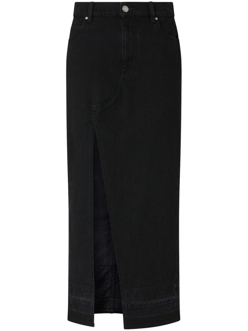denim maxi skirt Highlights - Black - Concealed front fastening - Belt loops - Classic five pockets - Front slit Imported Composition Cotton 99%, Elastane 1%