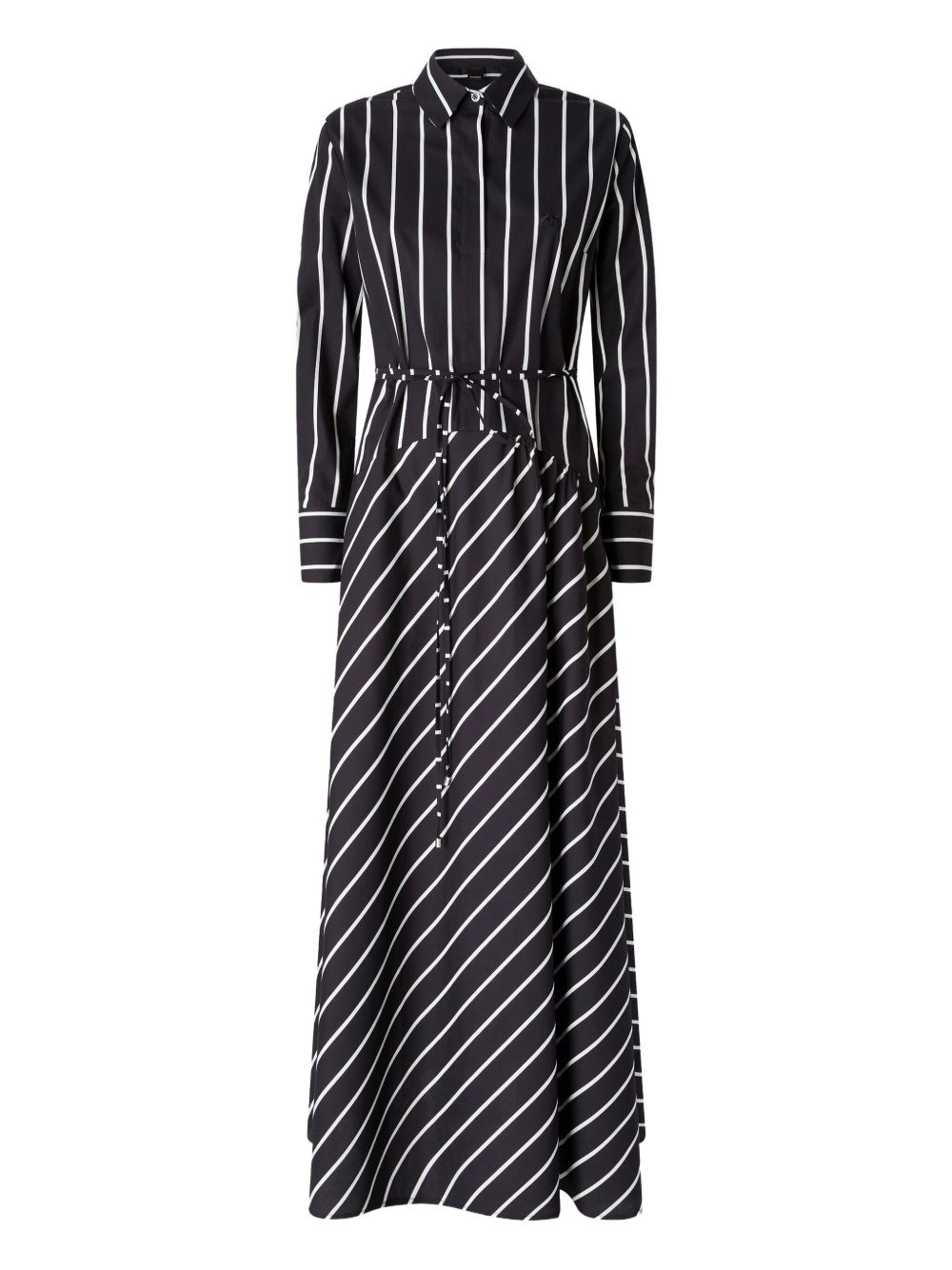 diagonal-stripe shirt dress Highlights - Black and white - Diagonal stripes - Shirt collar - Long sleeves - Belted waist Imported Composition Cotton 100% Washing instructions Read Manufacturer Guidelines