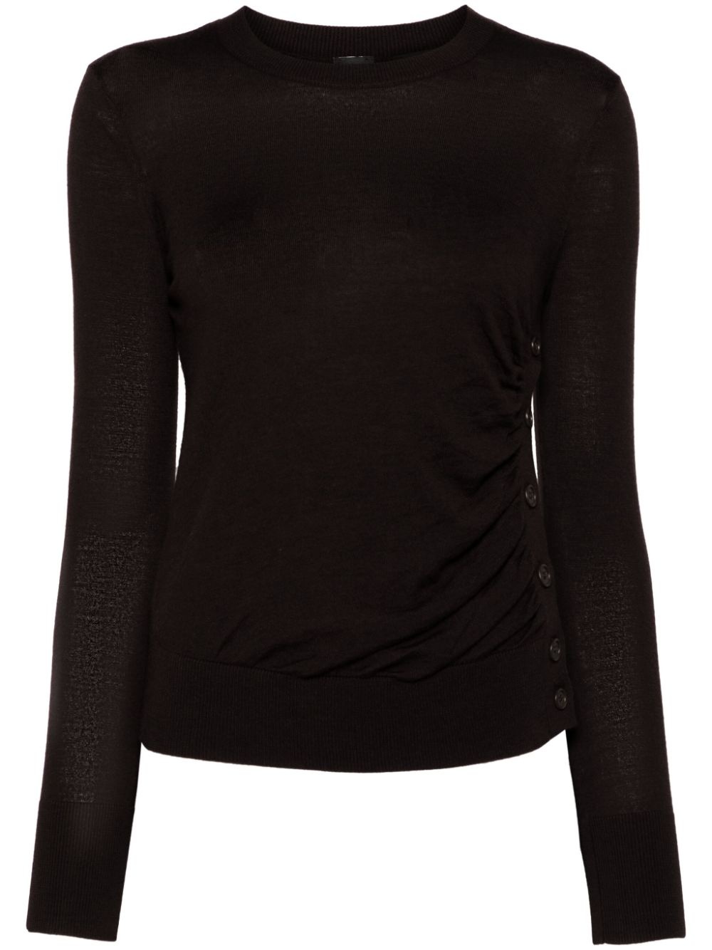 Diraspatura sweater Highlights - Coffee brown - Wool - Fine knit - Ribbed panelling - Crew neck - Long sleeves - Ribbed cuffs and hem - Button-up side slit Made in Italy Composition Wool 100% SIZE & FIT Model measurements Height 5 ft 10 in(1.77 m) Bust/Chest 29.92 in(76 cm) Hips 34.25 in(87 cm) Waist 23.62 in(60 cm) FittingInformation Designed for a slim fit that sits just away from the body offering a close yet comfortable fit Made with a lightweight knit, this piece offers some stretch This piece fits true to size – take your usual size