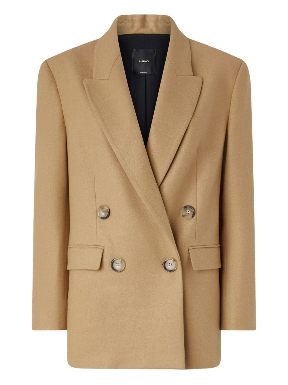 double-breasted blazer Highlights - Camel - Double breasted closure - Flap pockets Made in Italy Composition Polyester 66%, Wool 29%, Elastane 5%