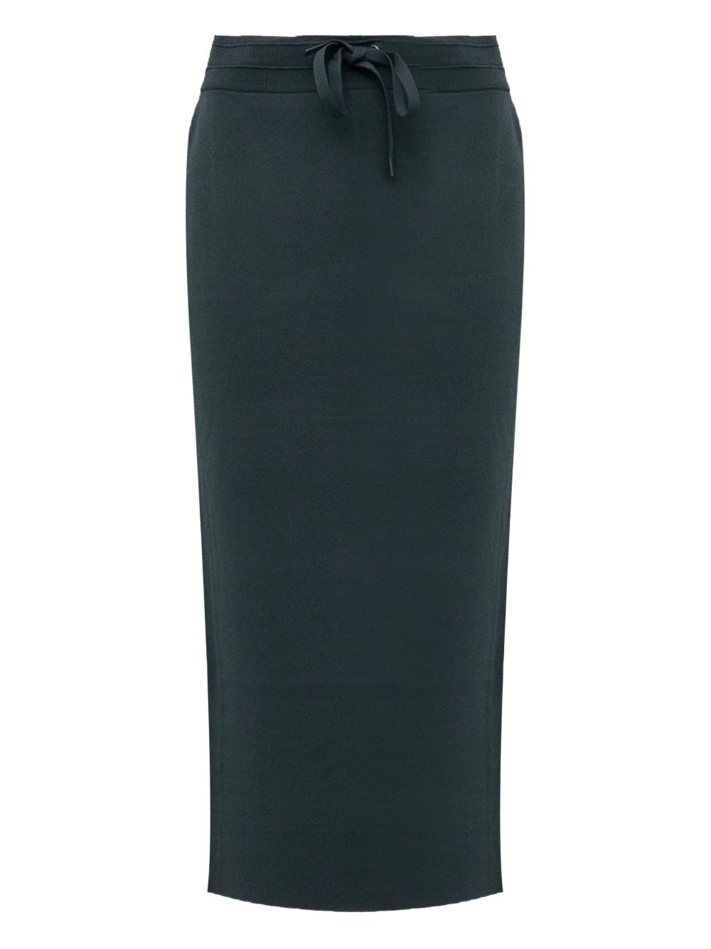drawstring side-stripe midi skirt Highlights - Dark green - Drawstring waist - Side stripe - Straight hem - Button detail Imported Composition Viscose 82%, Polyamide 18% Washing instructions Read Manufacturer Guidelines