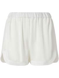 elasticated-waistband shorts Highlights - White - Pull-on style - Rear welt pocket - Short side slits - Thigh-length Made in Italy Composition Viscose 73%, Organic Linen 27%