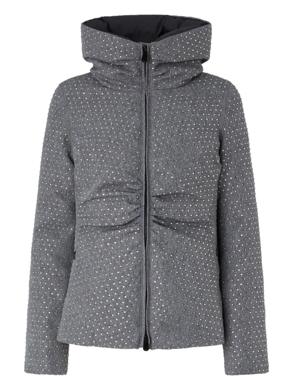 embellished puffer jacket Highlights - Grey - Stud embellishment - Zip fastening - Gathered detail - Long sleeves Imported Composition Polyester 100% Washing instructions Hand Wash