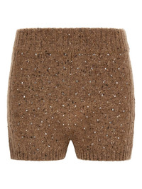 embellished ribbed shorts Highlights - Brown - Elastic waistband - Wool-blend - Logo detailing Imported Composition Wool 60%, Polyamide 20%, Viscose 20% Washing instructions Read Manufacturer Guidelines