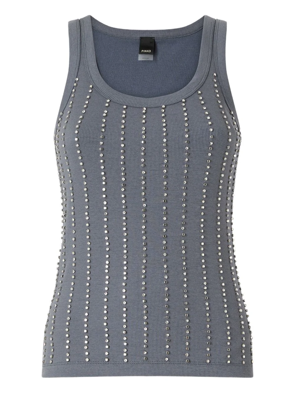 embellished ribbed tank top Highlights - Grey - Fine ribbed - Stud embellishment - Sleeveless - Scoop neck Imported Composition Cotton 65%, Polyester 30%, Elastane 5% Washing instructions Hand Wash