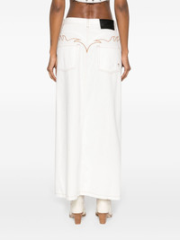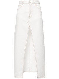 embroidered denim skirt Highlights - White - Cotton - Denim - Contrast stitching - Metal eyelet detailing - Embroidered design to the rear - Logo patch to the rear - Belt loops - Front button and zip fastening - Classic five pockets - Front slit - Straight hem Made in Italy Composition Lining: Cotton 100% Outer: Cotton 100% SIZE & FIT Model measurements Height 5 ft 11 in(1.8 m) Bust/Chest 31.49 in(80 cm) Hips 35.82 in(91 cm) Waist 24.8 in(63 cm) FittingInformation This maxi-length skirt is intended to be worn low on the hips Sturdy and hard-wearing, this denim piece offers no stretch This piece fits true to size – take your usual size