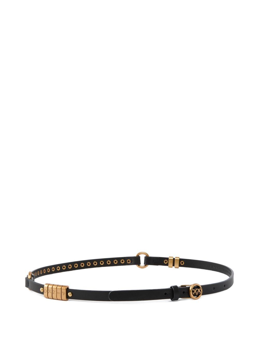 eyelet logo belt Highlights - Black - Gold-tone hardware - Eyelet detailing - Logo buckle - Adjustable fit - Pin buckle fastening Imported Composition Calf Leather 100%