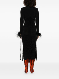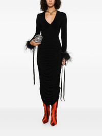 feather-trim midi dress Highlights - Black - Feather cuffs - V-neck - Long sleeves Imported Composition Outer: Viscose 94%, Turkey Feather 70%, Ostrich Feather 30%, Elastane 6% Lining: Nylon 92%, Elastane 8% SIZE & FIT Model measurements Height 5 ft 10 in(1.79 m) Bust/Chest 31.88 in(81 cm) Hips 35.43 in(90 cm) Waist 23.62 in(60 cm) Washing instructions Dry Clean Only