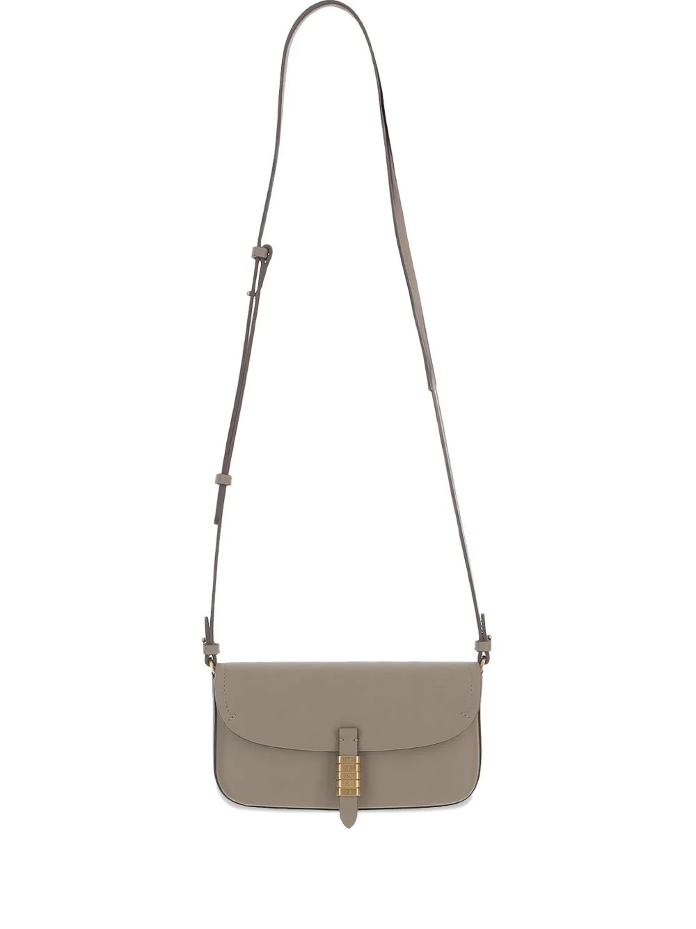 flap-closure leather shoulder bag Highlights - Beige - Leather - Adjustable shoulder strap - Flap closure - Metal logo detail Imported Composition Leather 100% SIZE & FIT Measurement DEPTH 0.78 in(2 cm) WIDTH 7.87 in(20 cm) HEIGHT 4.33 in(11 cm)