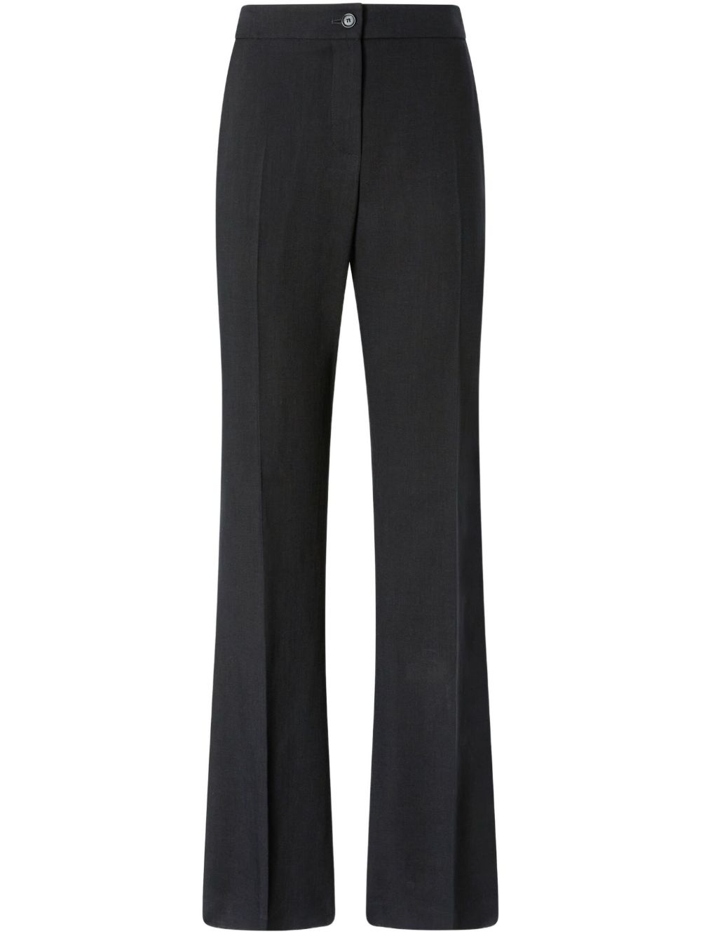 flared tailored trousers Highlights - Black - Concealed fly and button fastening - Pressed crease - Straight hem Imported Composition Viscose 91%, Polyester 9% Washing instructions Read Manufacturer Guidelines