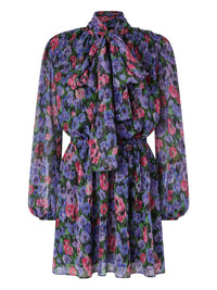 floral-print tie-neck mini dress Highlights - Purple - Floral print - Tie neck - Long sleeves Made in Italy Composition Polyester 100% Washing instructions Read Manufacturer Guidelines