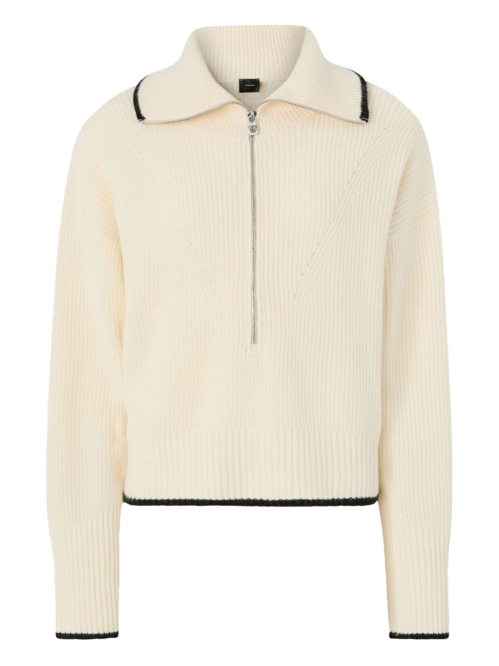 Folegandros half-zip sweater Highlights - Meringue white - Roll neck - Zip fastening - Black trim - Ribbed knit - Logo detail Imported Composition Wool 90%, Cashmere 10% Washing instructions Hand Wash