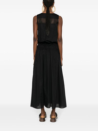 fringe-detail cotton midi dress Highlights - Black - Cotton - Semi-sheer panels - Fringe detailing - V-neck - Sleeveless - Elasticated waistband - Drawstring waist tabs - Internal slip dress - Straight hem Made in Italy Composition Outer: Cotton 100%, Acetate 98%, Polyamide 1%, Viscose 1% Lining: Cotton 100% SIZE & FIT Model measurements Height 5 ft 8 in(1.73 m) Bust/Chest 29.92 in(76 cm) Hips 33.07 in(84 cm) Waist 23.22 in(59 cm) FittingInformation Designed to be unstructured, offering a loose fit throughout The detachable slip sits just away from the body, offering a close yet comfortable fit Made from a midweight non-stretch fabric This piece fits true to size – take your usual size