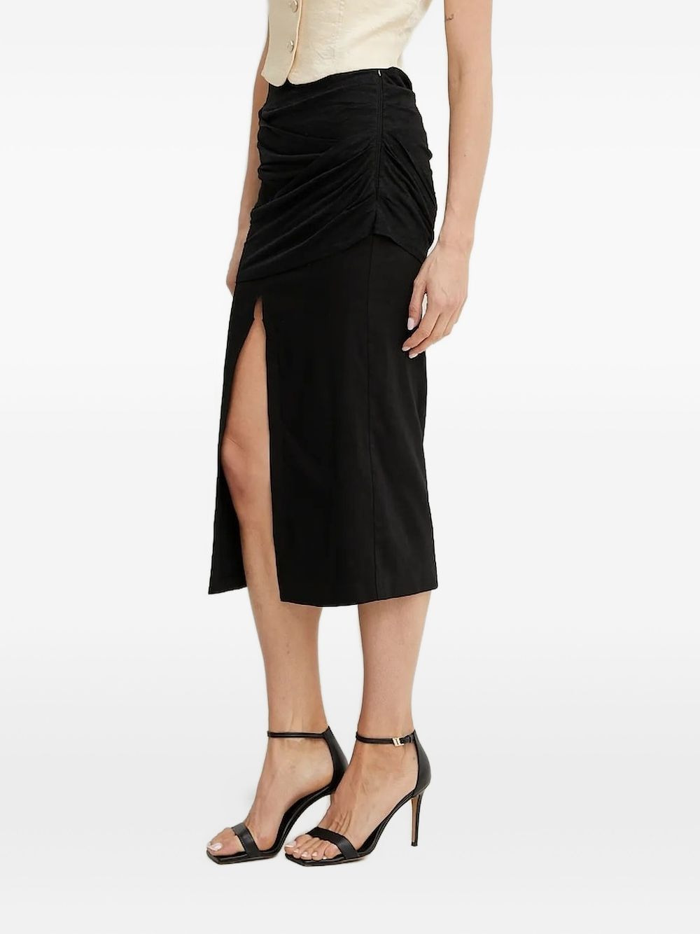 gathered midi skirt Highlights - Black - Gathered detailing - Mid length - Concealed zip fastening - Straight hem Imported Composition Linen/Flax 55%, Viscose 42%, Elastane 3% Washing instructions Read Manufacturer Guidelines