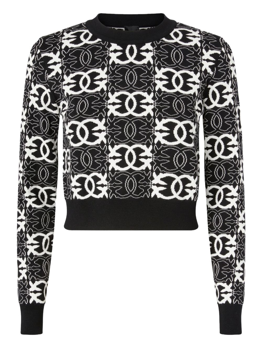 geometric-pattern sweater Highlights - Black and white - Geometric pattern - Long sleeves - Ribbed cuffs - Crew neck Imported Composition Viscose 72%, Polyester 28% Washing instructions Hand Wash