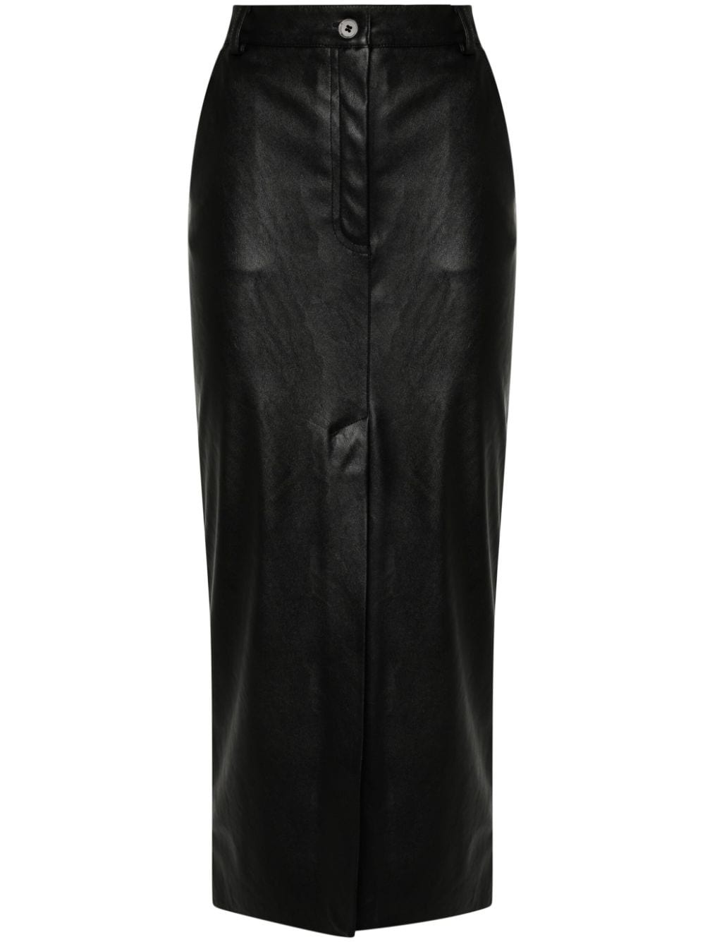 LEATHER-EFFECT MIDI SKIRT WITH SLIT AT THE HEM