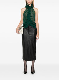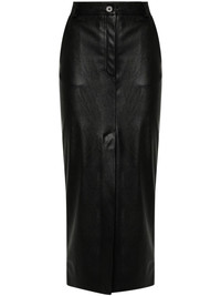 Ginocchiera midi skirt Highlights - Black - Faux leather - Belt loops - Two diagonal pockets to the sides - Front slit - Straight hem - Mid-length - Concealed fly and button fastening Made in Italy Composition Outer: Polyester 100%, Polyurethane 100% Lining: Cotton 100% SIZE & FIT Model measurements Height 5 ft 9 in(1.75 m) Bust/Chest 31.88 in(81 cm) Hips 34.64 in(88 cm) Waist 24.01 in(61 cm) FittingInformation This midi-length skirt is intended to be worn just below the waist Made from a midweight non-stretch fabric, this piece offers minimal elasticity when worn This piece fits true to size – take your usual size
