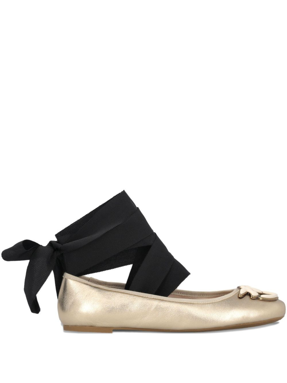 Gioia 02 ribbon-detail ballet flats Highlights - Gold - Ribbon ankle tie - Logo detail - Flat sole - Round toe Imported Composition Outer: Leather 100% Lining: Leather 100% Sole: Rubber 100%