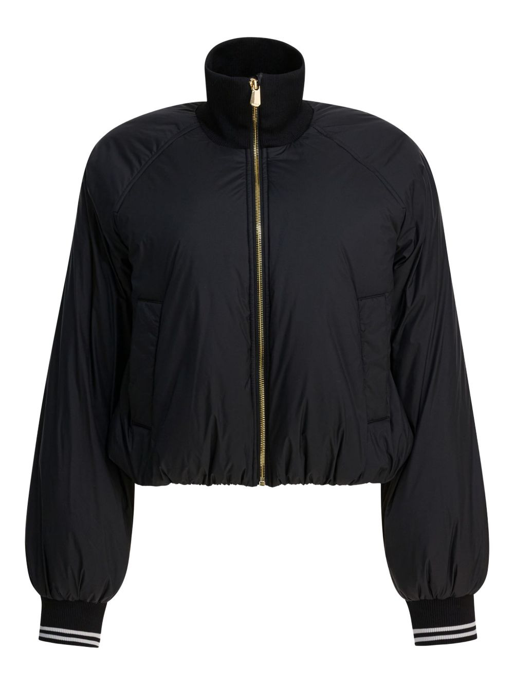 high-neck zip-front jacket Highlights Imported Composition Polyester 100%