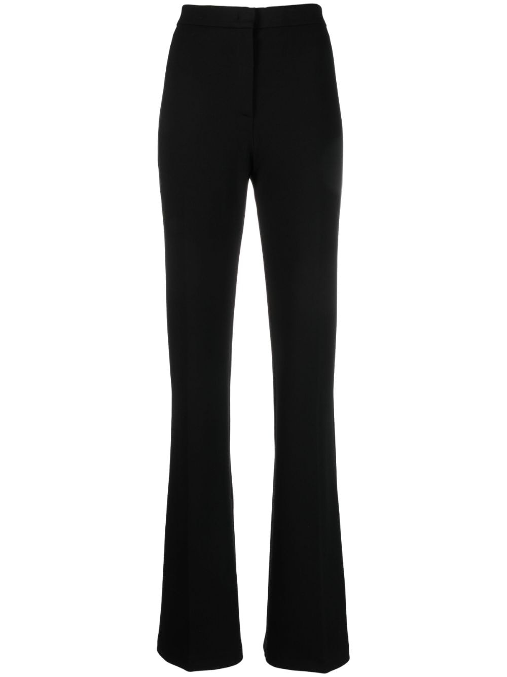 high-waisted flared crepe trousers Highlights - Black - Crepe texture - Concealed front fastening - High-waisted - Slight flare - Floor-length Made in Italy Composition Outer: Viscose 67%, Polyamide 28%, Spandex/Elastane 5% Lining: Acetate 68%, Polyester 32% SIZE & FIT Model measurements Height 5 ft 9 in(1.75 m) Bust/Chest 32.67 in(83 cm) Hips 35.03 in(89 cm) Waist 24.21 in(61.5 cm) FittingInformation Designed with a flared hem, these trousers allow for a close fit at the waist with a slim fit over the leg and widening towards the hem Made from a midweight stretch fabric, this piece offers elasticity and flexibility when worn This piece fits true to size – take your usual size
